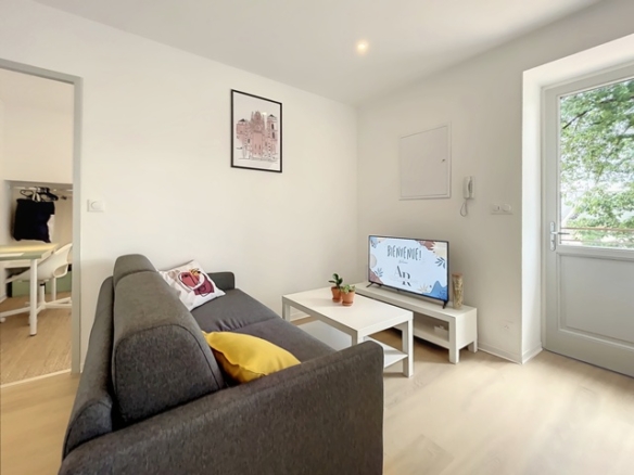 À louer, appartement meublé en rez-de-chaussée avec entrée indépendante, terrasse et jardin privatif, situé dans une résidence sécurisée exclusivement destinée aux étudiants.